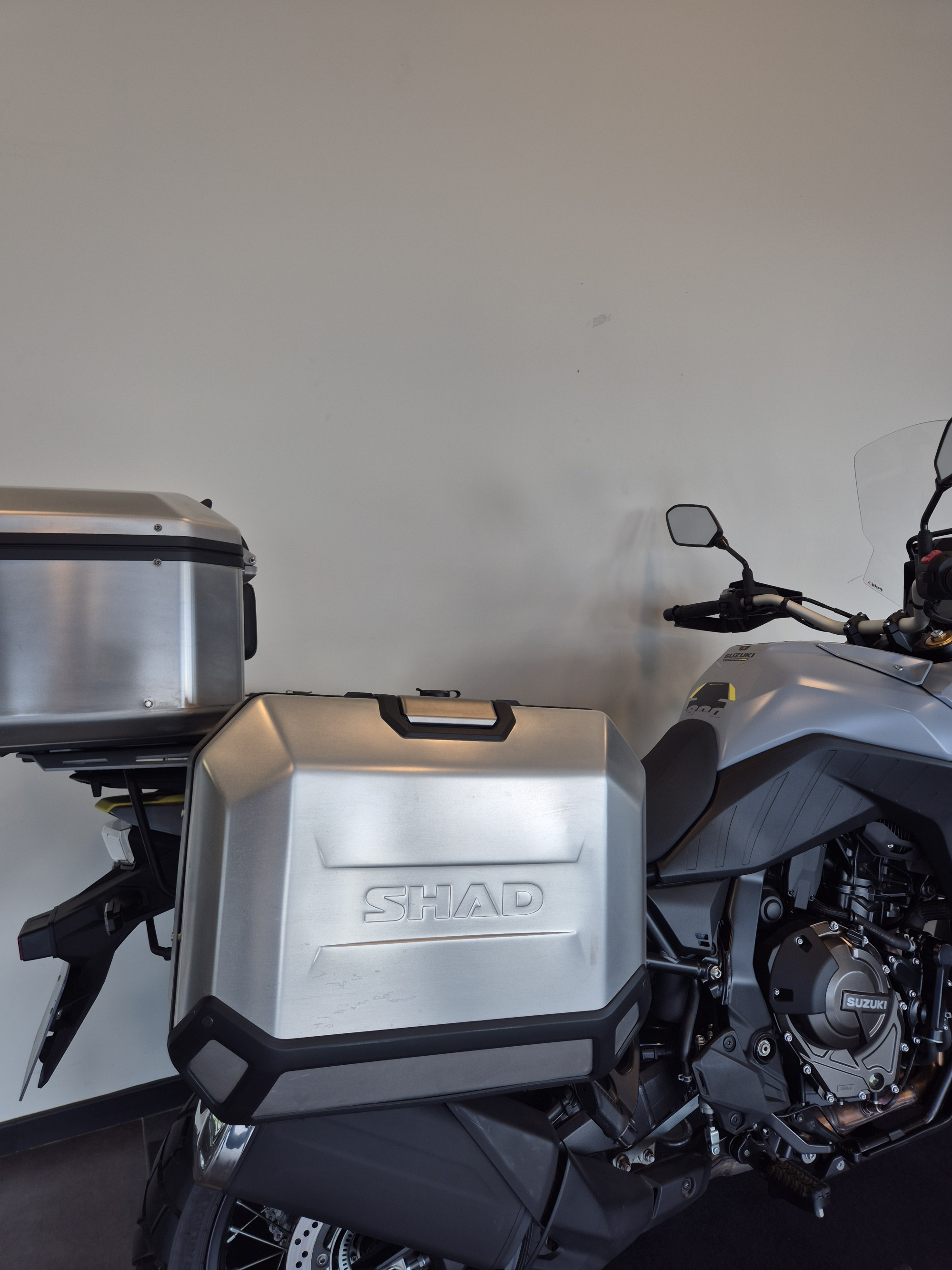 Bagageries complètes SHAD, pare carter Suzuki, bulle haute Puig